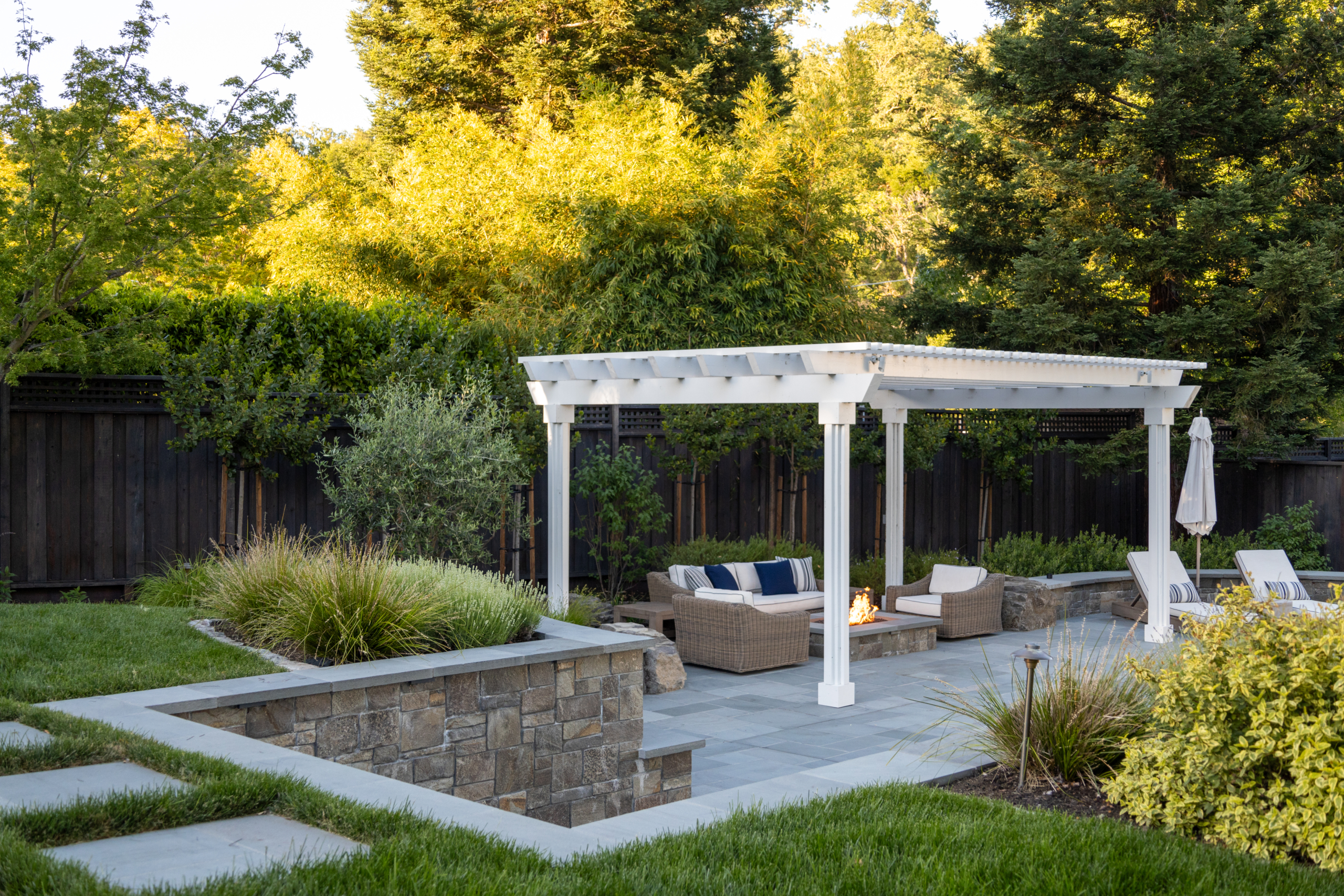 Lafayette landscape architecture often involves properties that have evolved over decades, with mature trees and phased updates, so design often starts with one clear plan that pulls everything together. It is common for the front and back to feel like separate projects after phased updates, even when each area has good bones. Gentle to moderate slopes can also create small grade transitions that feel minor at first, but become awkward later if circulation, drainage, and terrace relationships are not coordinated early. A strong plan helps protect what already works, clarify what should be simplified, and set a calm sequence from arrival to the main outdoor rooms so the finished property feels calm, natural, and complete.